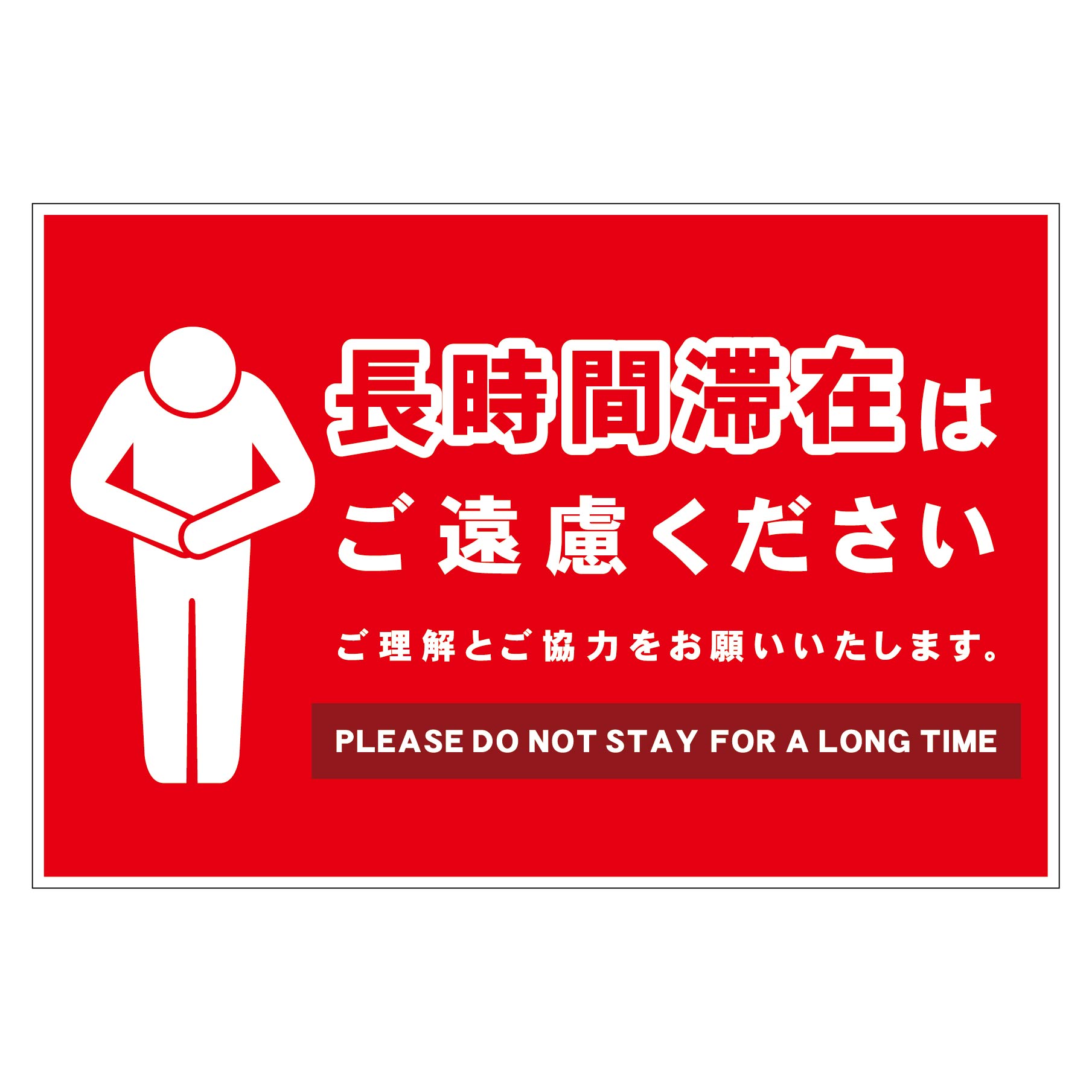 長時間滞在ご遠慮サイン ステッカー横大赤H300XW450の数量を増やす