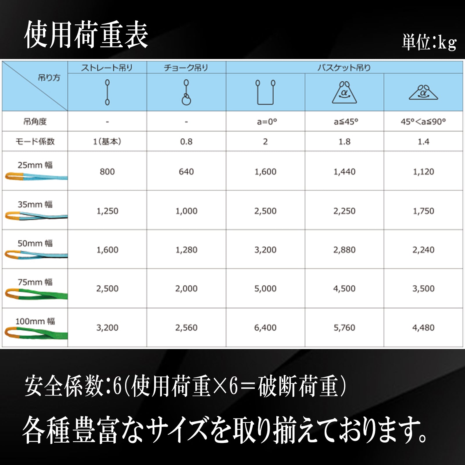 スリングベルト縫製加工技術向上により、引っ張り強度・伸び・耐久性・耐水性・対候性・防腐性、あらゆる面でパワーアップしたスリングベルトです。ポリエステル原糸から完成品まで、強度や伸び・引張テストを国内試験で徹底するなど、品質管理は万全の体制をとっています。安全基準の徹底したハードな現場でも安心してご使用いただけます。