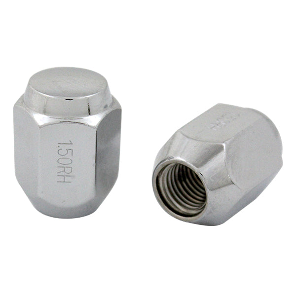 タイヤホイール用の袋タイプのナットです。別名化粧ナット、一般的な六角ナットの片面が閉じており、ネジ穴が貫通していない六角ナットです。ボルトのおねじ先端部が現れないように、片面を帽子状にしたナットです。締めつけられる物体内部の流体がもれにくくなって耐密性となり、おねじ先端部が見えないため装飾効果もあります。
