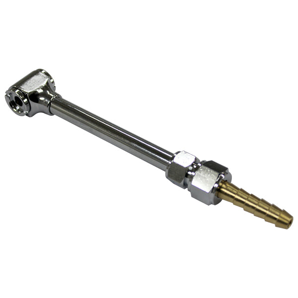 ヘッドのバルブ口金とバイプが直角になっていますので、二輪用に最適です。自転車用のバルブ(英式バルブ)と二輪車/自動車用のバルブの2構造になってなっております。