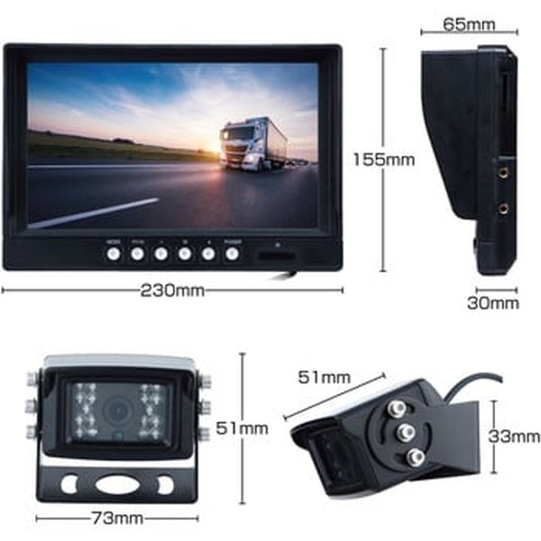 バックカメラ&9インチモニターのSET!カメラはアナログハイビジョンで鮮明です。モニターは9インチでIPS方式。高性能・低価格を実現しました。カメラ視野角約タテ120°ヨコ90°のワイドビュー。夜間自動切換赤外線内蔵・モニターはスピーカー内蔵・リモコン付き・12V/24V車共用です。