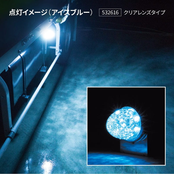 超高輝度LED、特殊レンズ構造による鮮やかな拡散発光で、路面まで明るく照射のスターライトバスマーカーです。耐光性試験に合格した変色しにくいレンズを使用。防塵防水IP67取得、ノイズ対策済み。24V大型トラック~12V軽自動車まで対応できます。