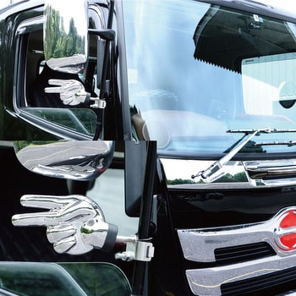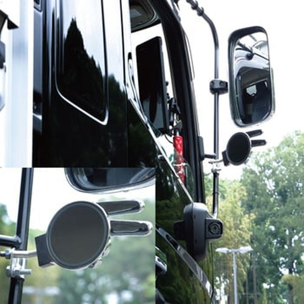 元祖じゃんけんミラー(バイク用)をトラック用バックショットミラーとして再現しました。眩しさを軽減し距離感の掴みやすい防眩平面レンズを採用しています。金属部分はすべてステンレス製を採用しサビにも強いです。