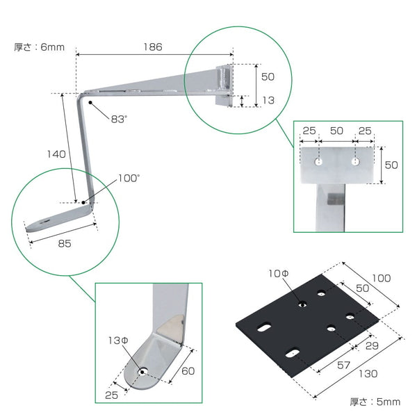 ブレ対策として補強と合わせ、ステンレス製ステーの厚さは6mm。