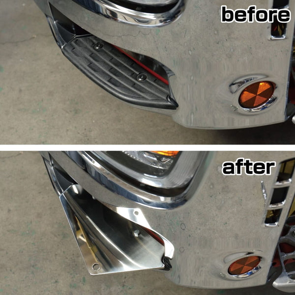 | 取り付けには加工が必要です。※専門店でのお取り付けをお勧めいたします。※年式はあくまでも目安となります。※スカートが対策バンパーより下にある車両、低床車、トレーラーヘッド(トラクタ)取付不可。※高床車でも仕様により取付不可の場合がございますのでご確認の上お求めください。 |