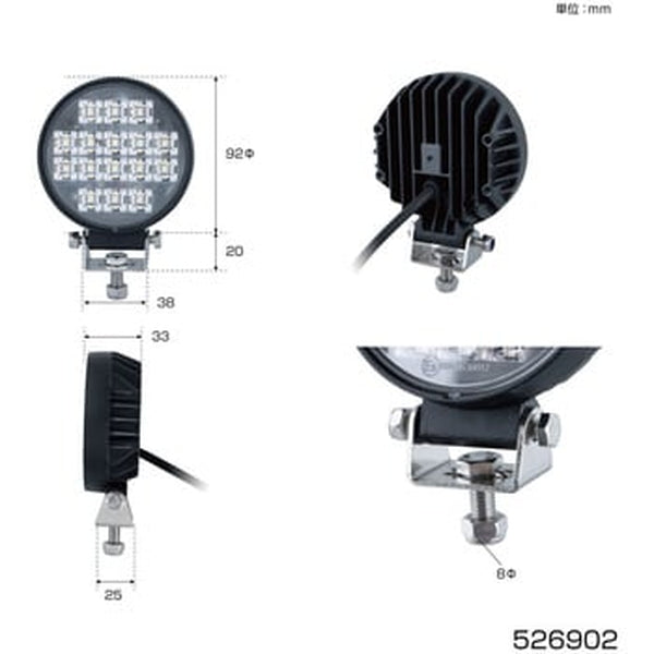 ジェットイノウエ LEDワークランプ 丸型 WL-39 16W 3.5インチ 526902