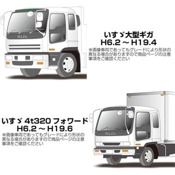 | いすゞ大型ギガ/07ギガ/NEWギガ(H6.12~H27.10)、いすゞ4t320/342フォワード(H6.2~H19.6) |