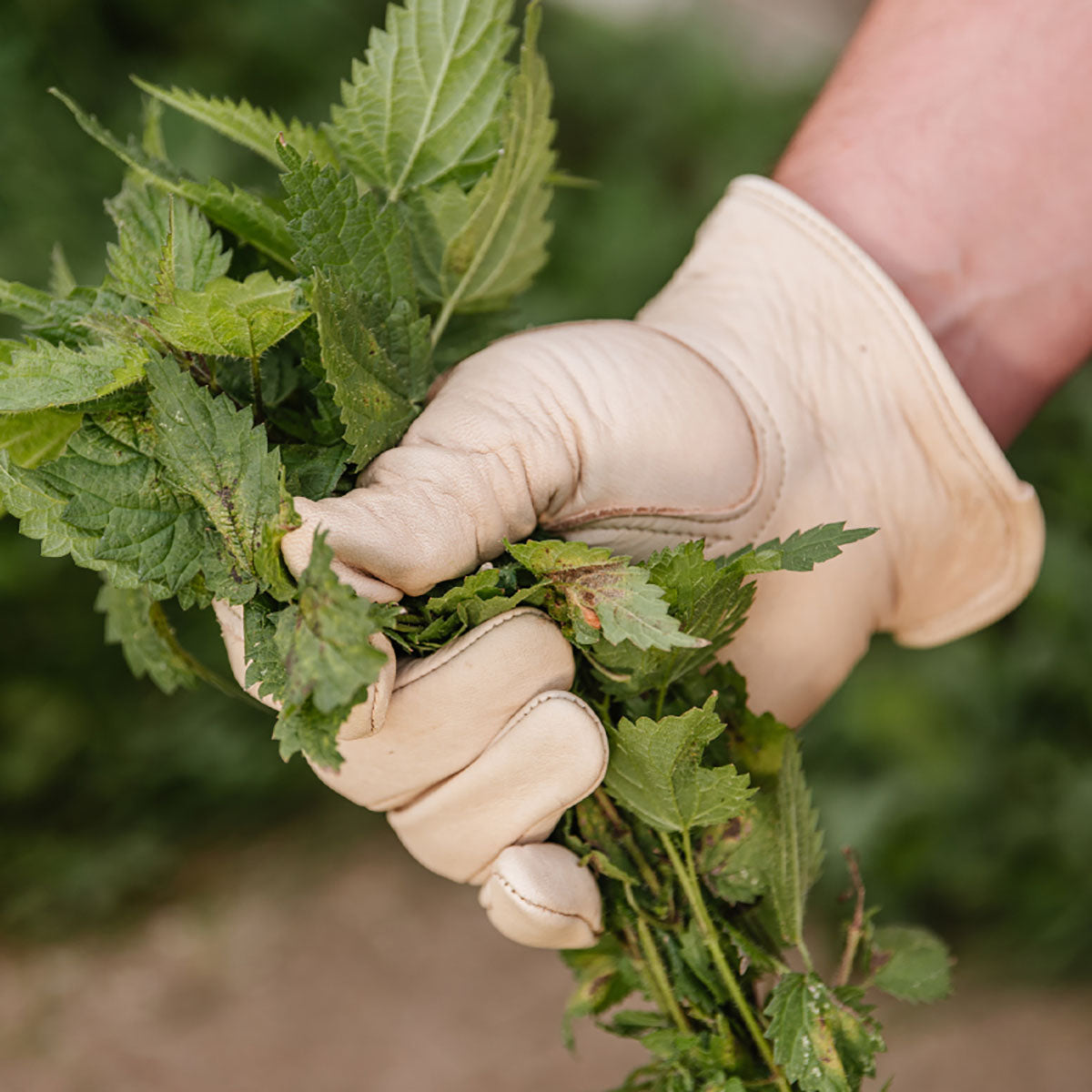 やわらかくしなやかなレザーには撥水加工が施されており、湿り気を伴う作業に最適です。