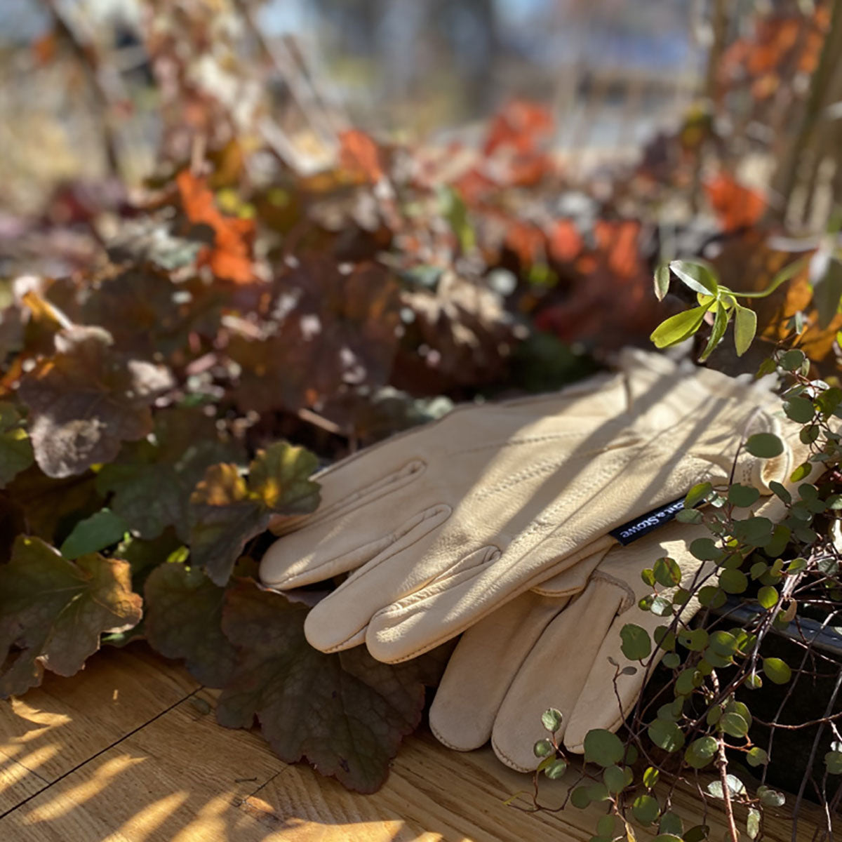 やわらかくしなやかなレザーには撥水加工が施されており、湿り気を伴う作業に最適です。