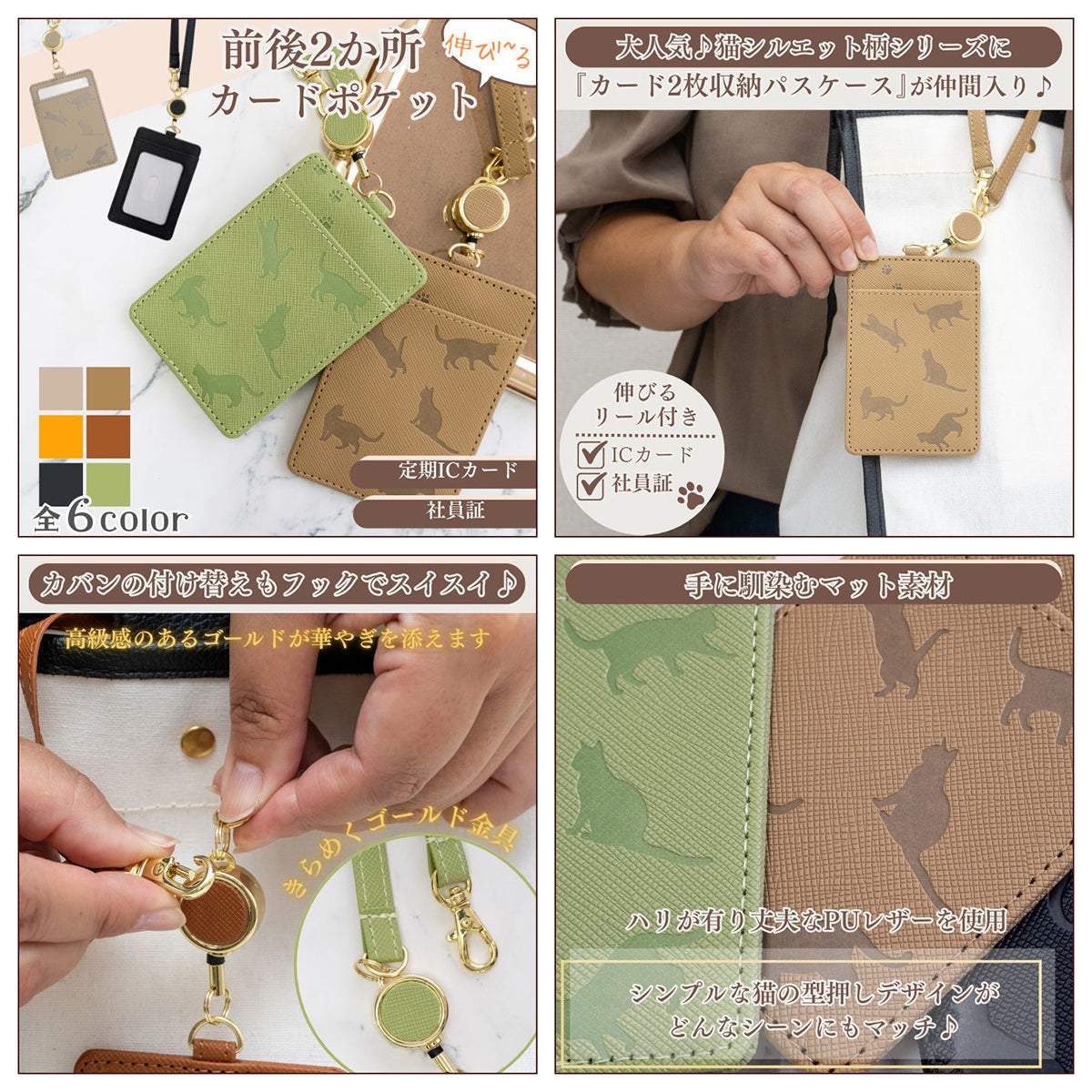 型押しの猫シルエットが大人かわいいデザインのパスケースです。