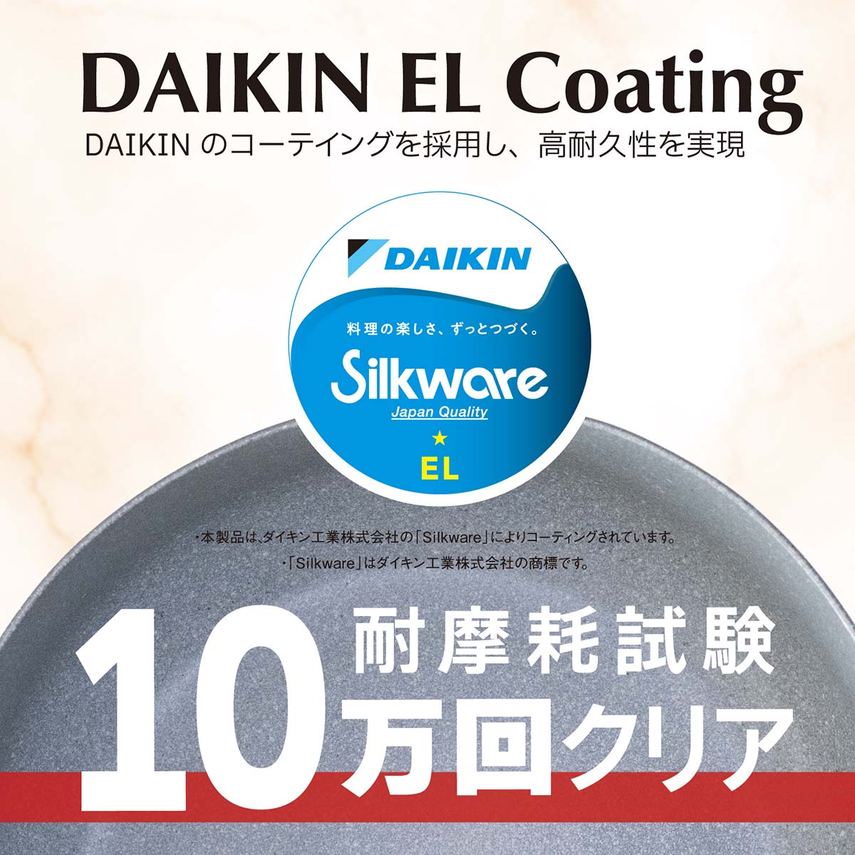 ダイキン工業株式会社の「Silkware」によりコーティングされた両手鍋です。