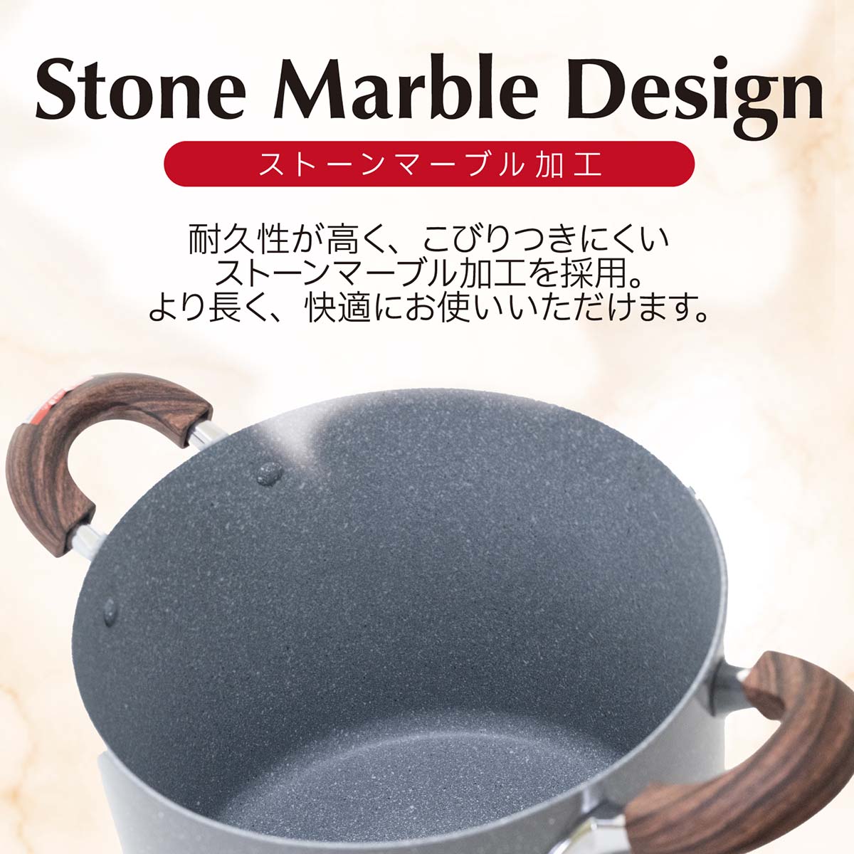 耐久性が高く、こびりつきにくい、ストーンマーブル加工を採用。