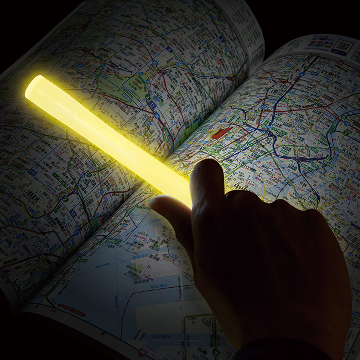 『災害備蓄用ルミカライト』は、軽く折り曲げるだけで光る、火や電気を必要としない安全なライトです。