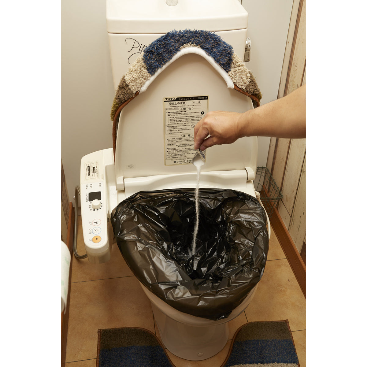 断水・停電時などの緊急時に水なしで使える簡易トイレです。