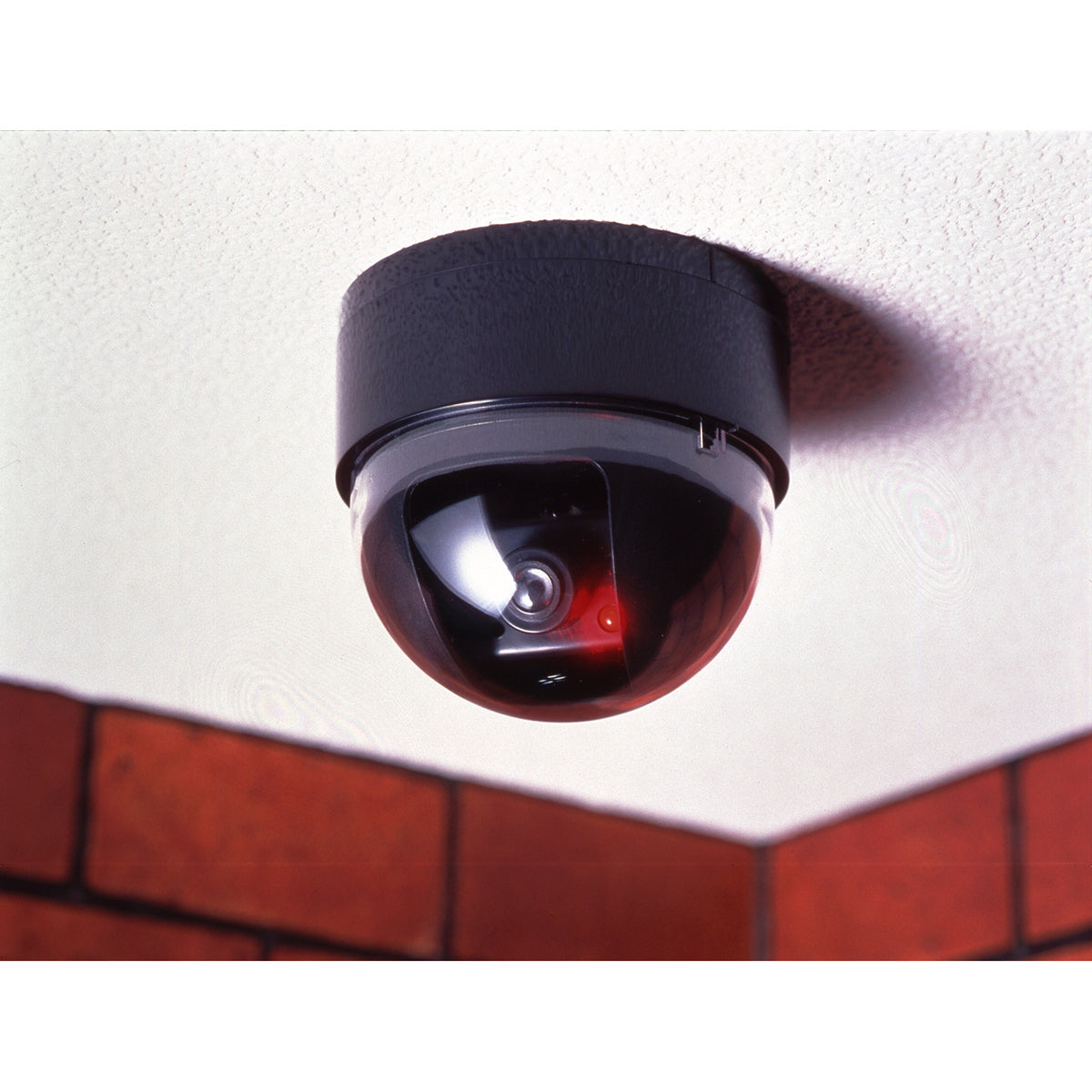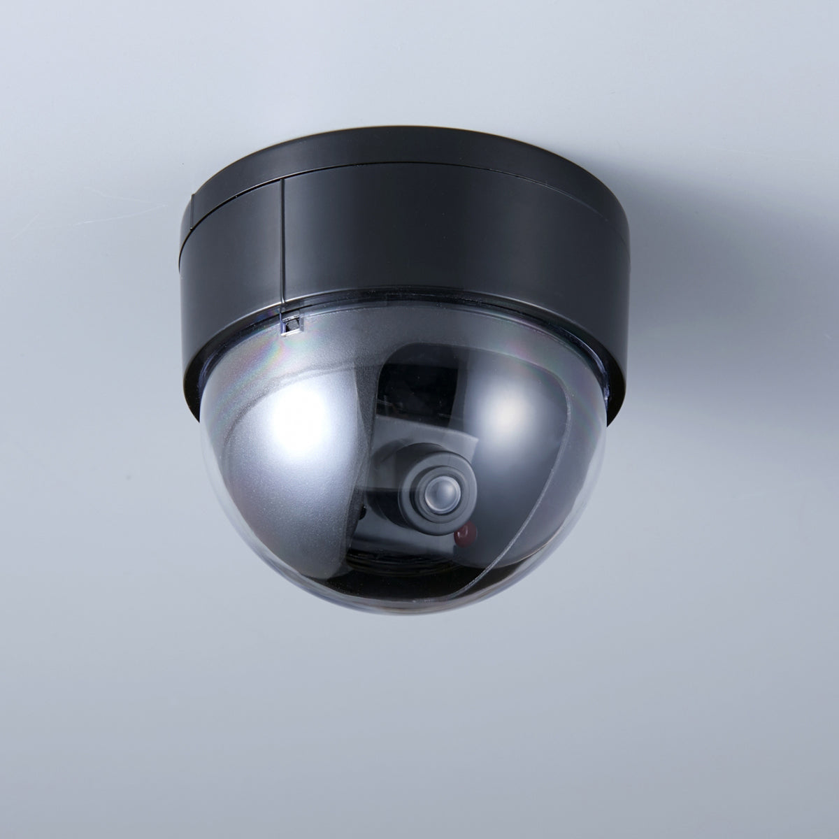 『ドーム型防犯ダミーカメラ』は、CDSセンサー(明るさセンサー)で人が近づくとLEDが点滅する屋内用のダミーのカメラです。