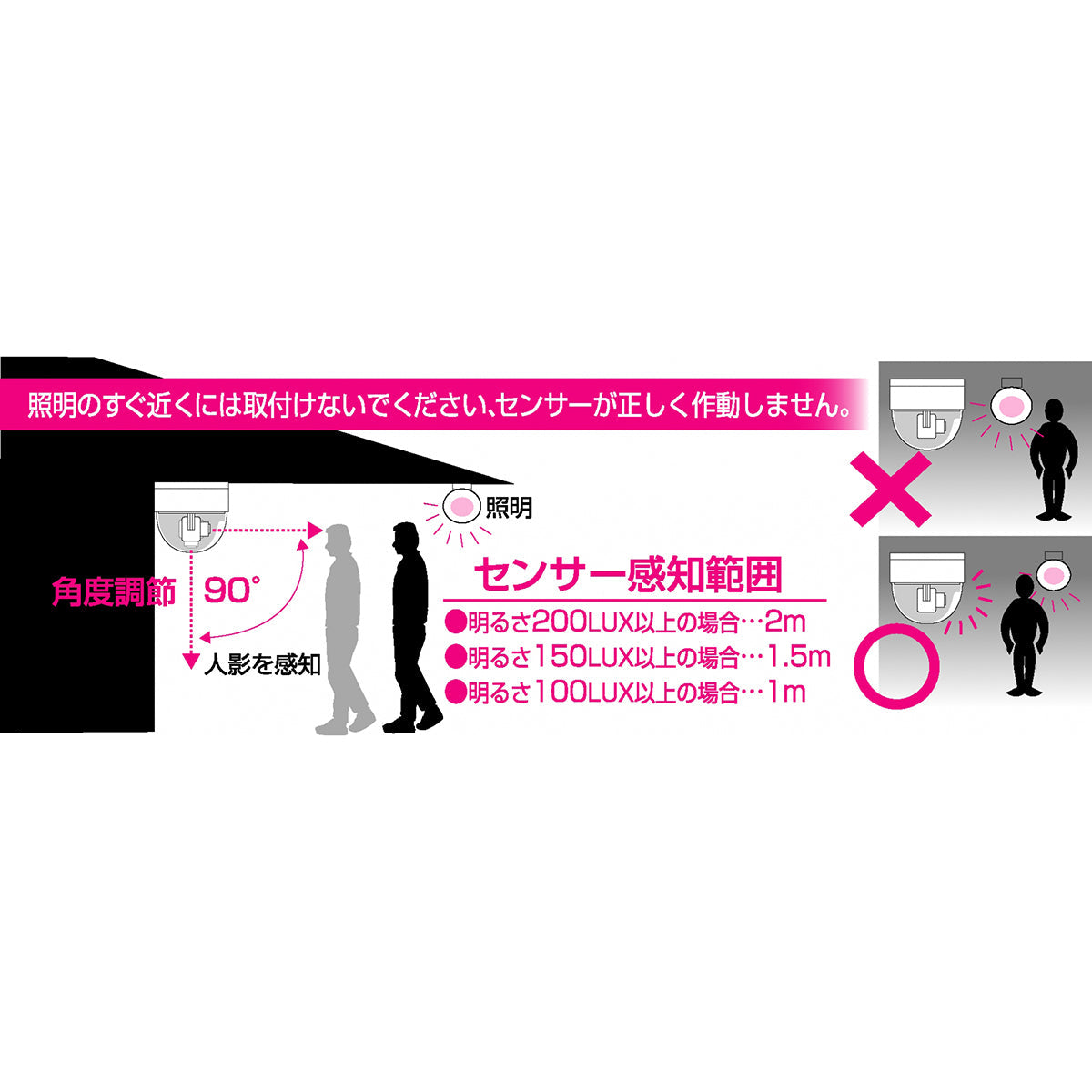 センサーが反応すると約2秒間隔で赤色LEDが点滅し不審者に警戒感を抱かせます。