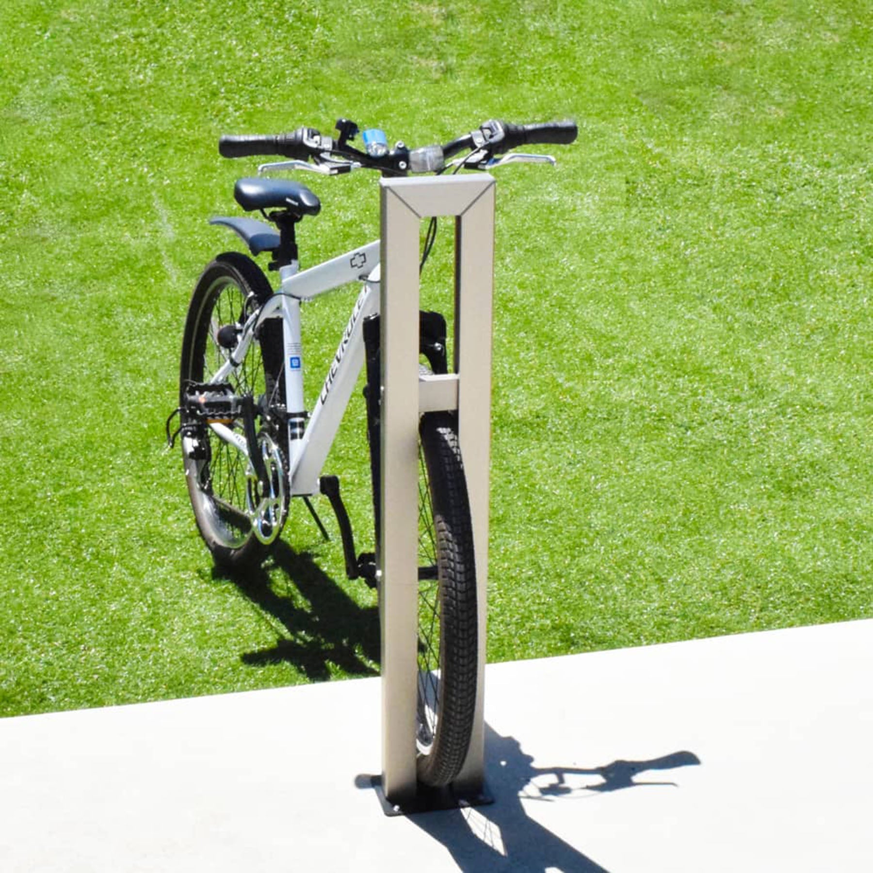 ●サイクルスタンドS01型は、シンプルな格子デザインで幅広く使えるアルミ製の1台用自転車スタンドです。