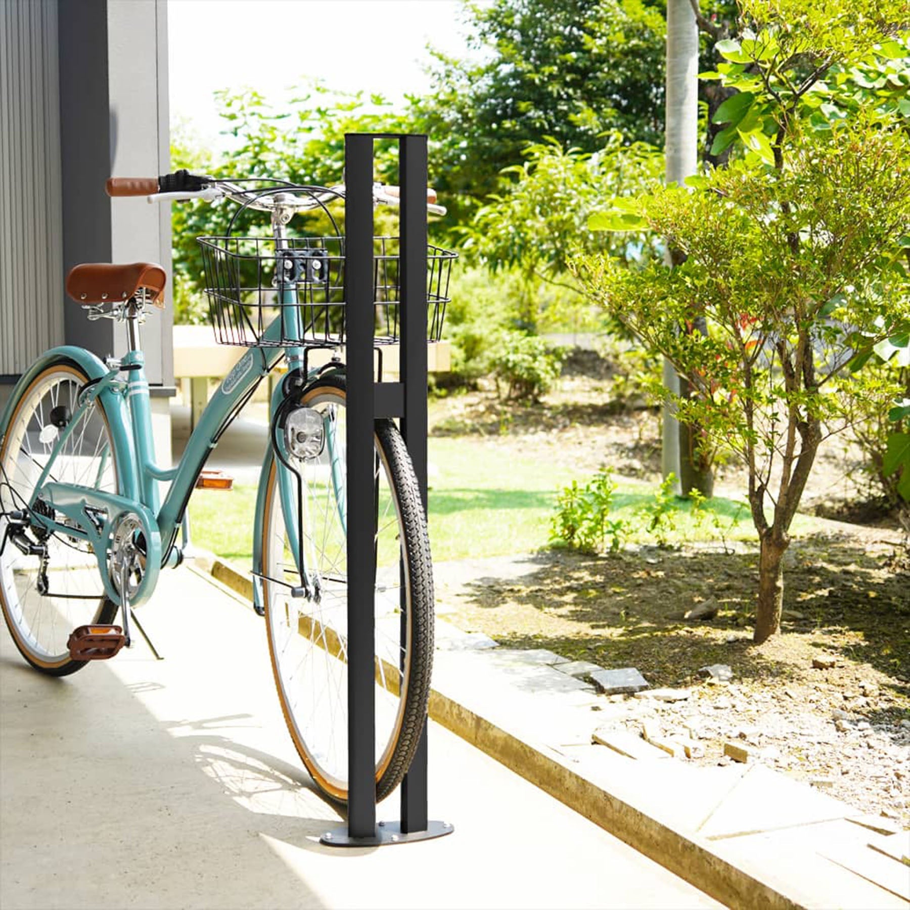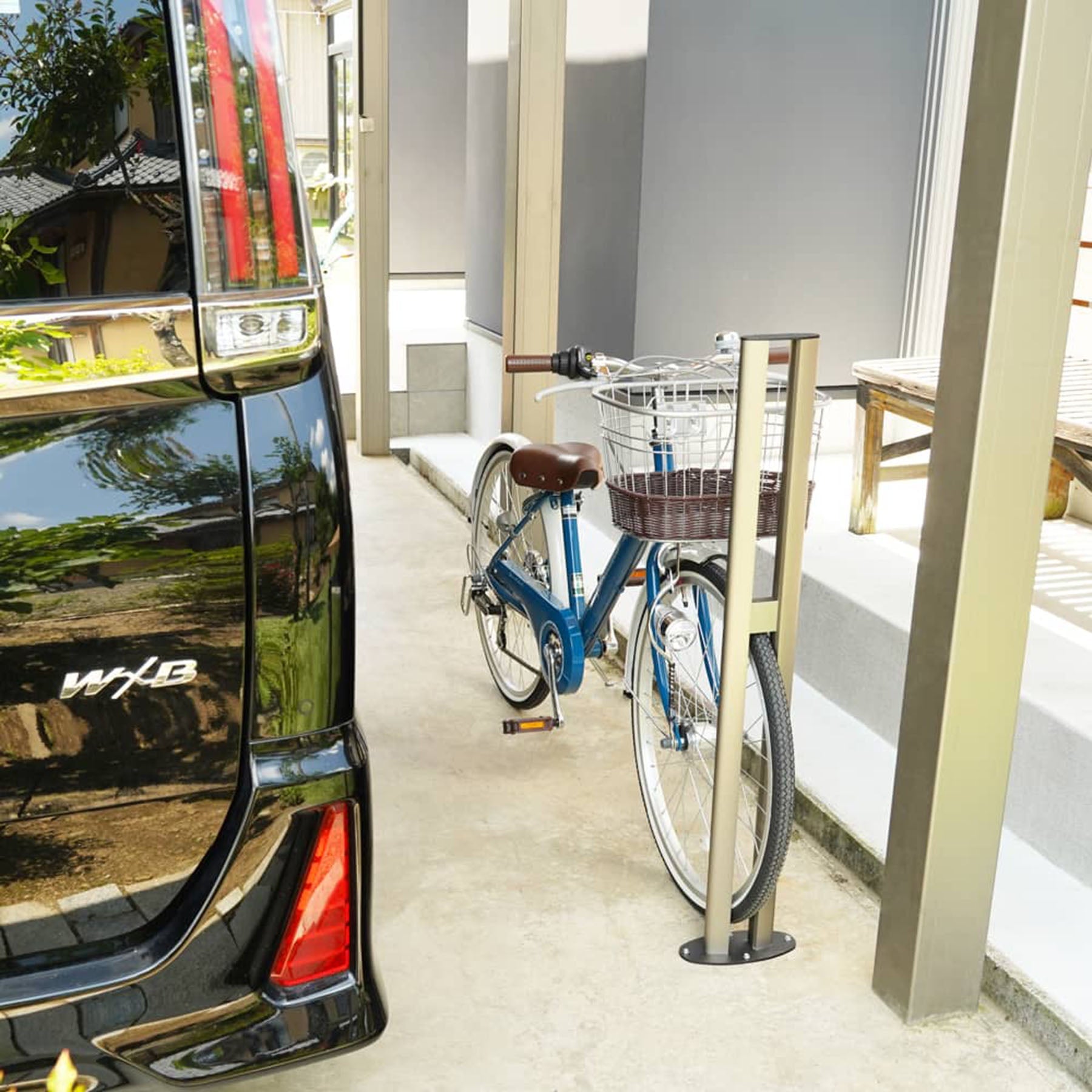 ●2本のポールが車輪の傾きを抑制するから省スペースに駐輪できます。