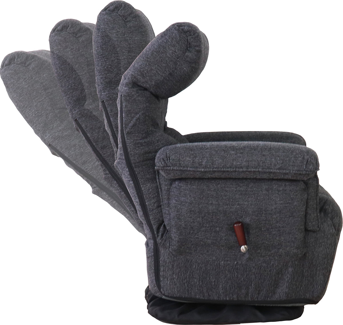 背もたれは手元レバーガス式無段階リクライニングできます。