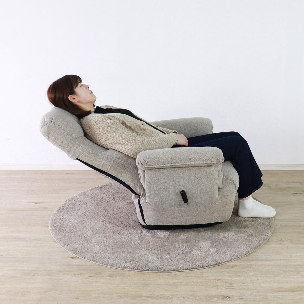 背もたれは手元レバーガス式無段階リクライニングできます。