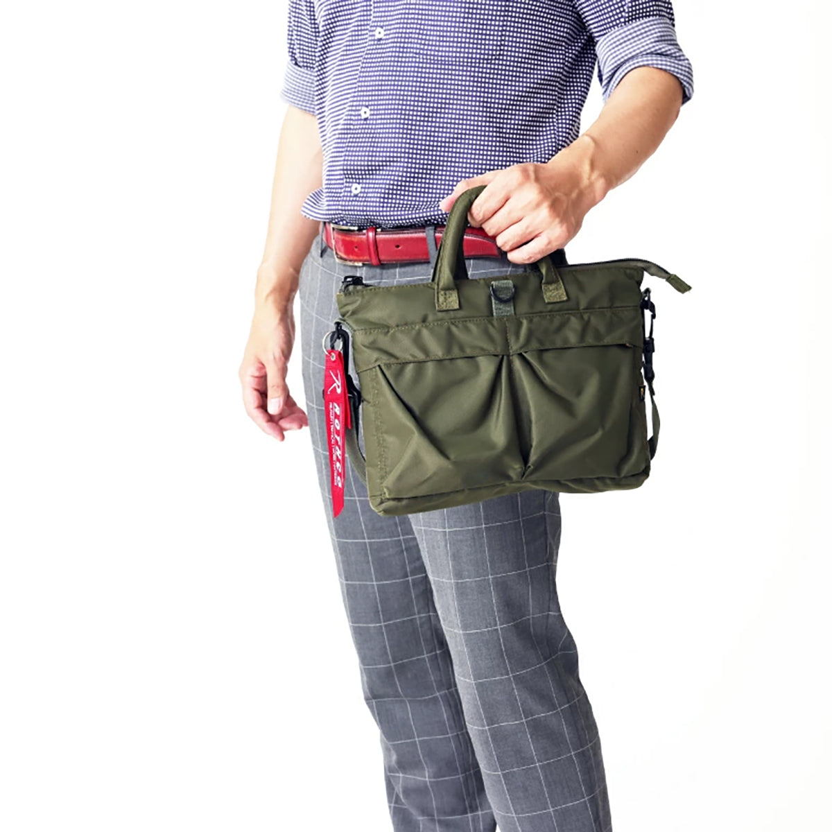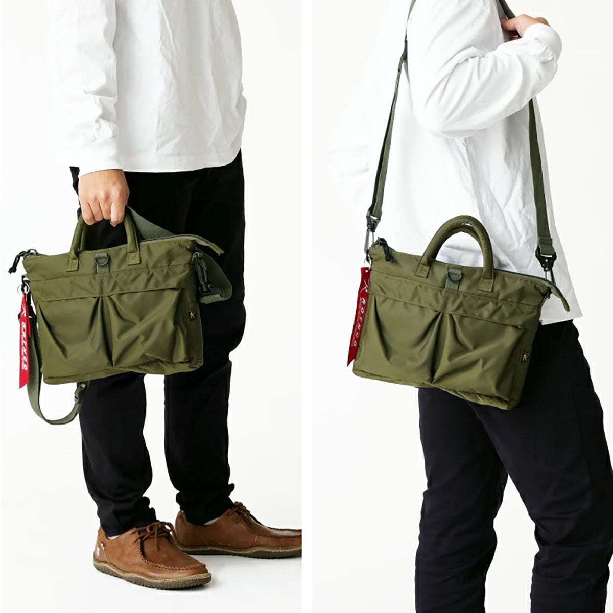 ショルダーベルトで肩から掛ける事ができます(ショルダーベルトは着脱可)。