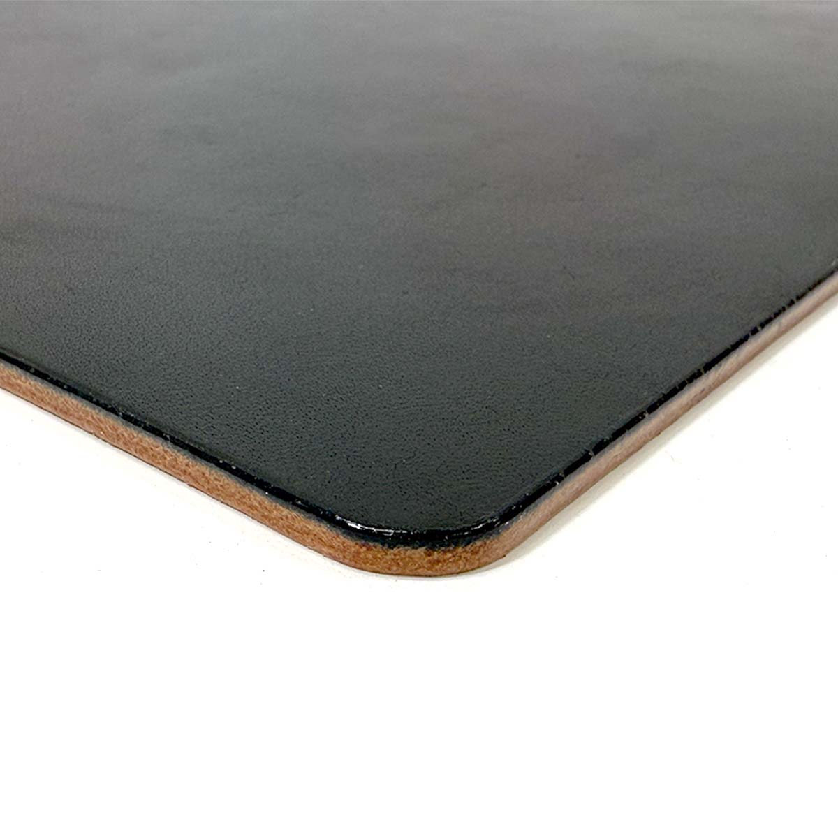このマウスパッドの側面からもうかがえる革の深くまで含侵させた黒色は、艶はもちろん長年の使用でも傷が目立ちにくい耐久性も生み出しています。