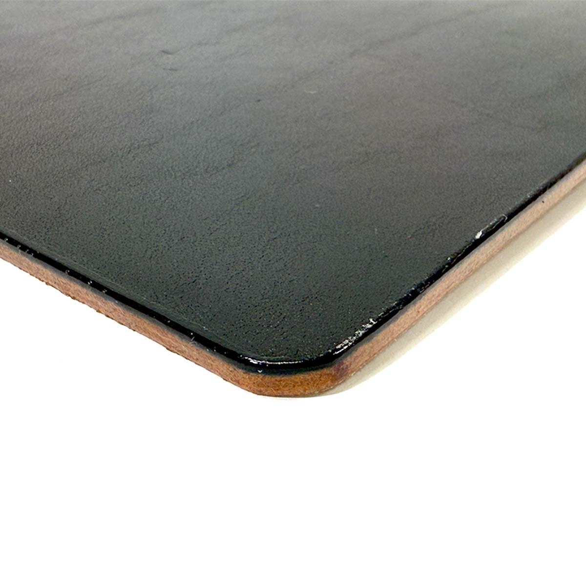 このマウスパッドの側面からもうかがえる革の深くまで含侵させた黒色は、艶はもちろん長年の使用でも傷が目立ちにくい耐久性も生み出しています。