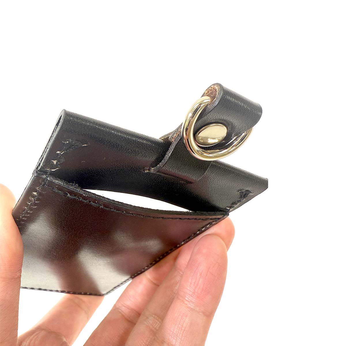 本体を構成するタンニン鞣しの皮革は当社が納品している警察装備品にも使われる本物。
