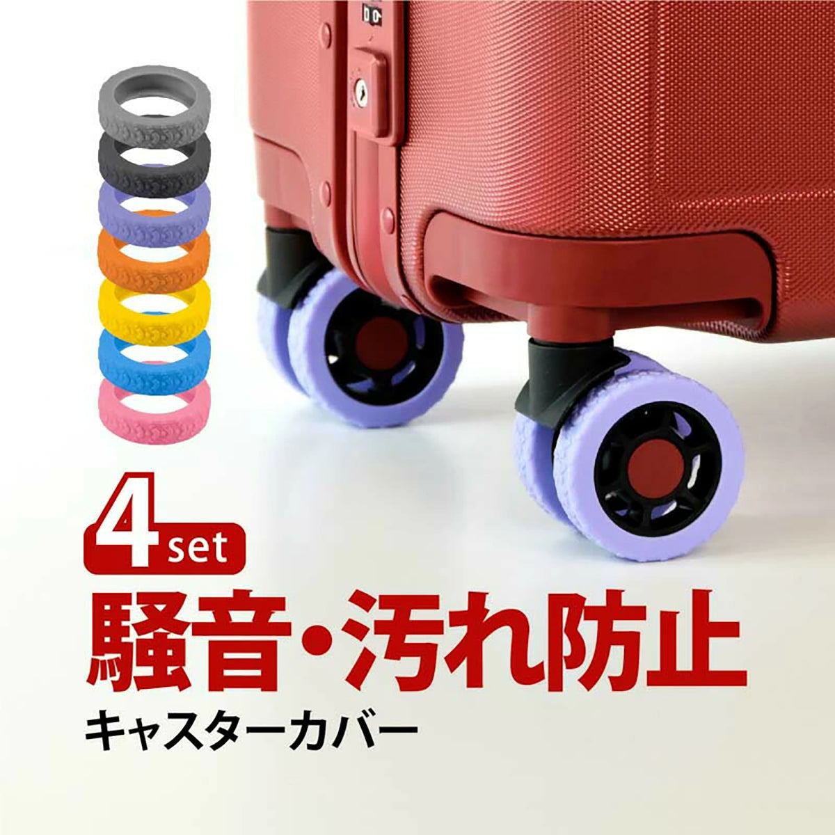キャスターカバー ストレート 4個セット 静音 シリコン製 スーツケース タイヤカバー 汚れ防止 キャリーケース タイヤ保護 ピンク |