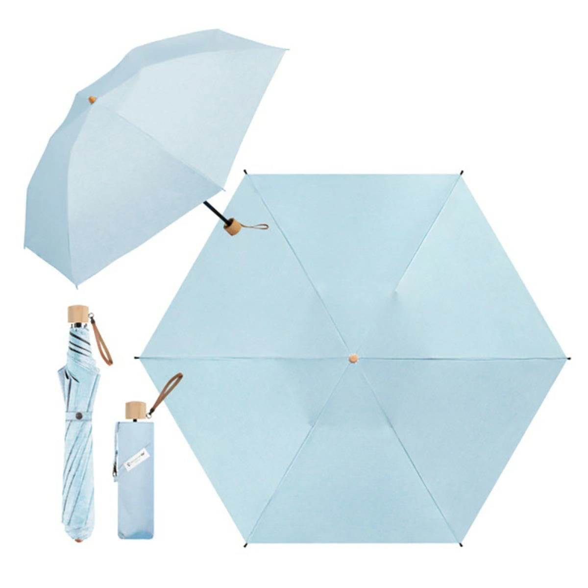 超軽量 折りたたみ傘 晴雨兼用 UV対策 天然木グリップ 2WAY収納 カラビナ付き (杢ブルー) |