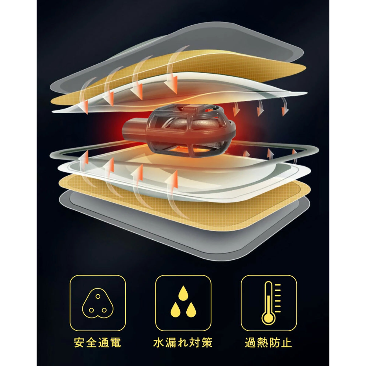 蓄熱後はコードレスで持ち運び自由、加熱防止機能付きで安心です。