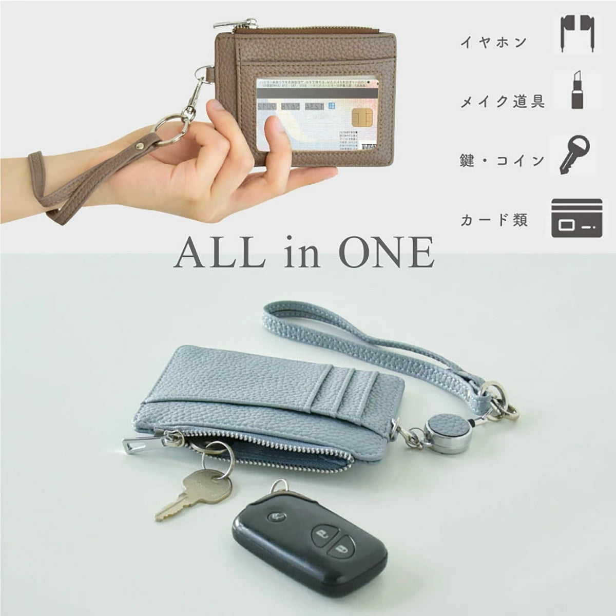 鍵や小銭、リップ、クレジットカードなどの小物を収納して持ち歩く際に。 カバンの持ち手や肩紐に取り付けて紛失防止に。 リール機能でカードや鍵をサッと取り出したいときに。 入学式や卒業式のプレゼントに。 旅行やお出かけで身軽に行動したいときに。 |