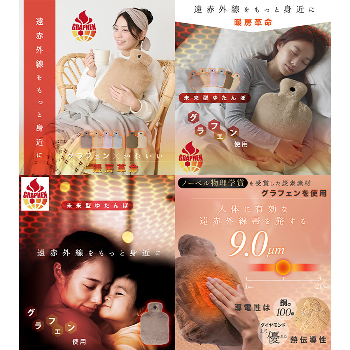グラフェン発熱体の両面発熱で手先やお腹をムラなく包み込みます。