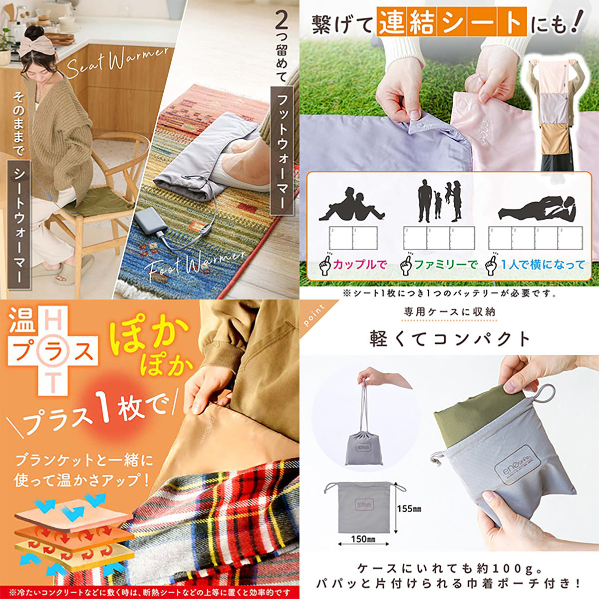 ENETANPO USB シートヒーター 超薄型 2mm 軽量 約90g 3段階温度 タイマー付 マグネット着脱 専用ケース付 ベージュ |