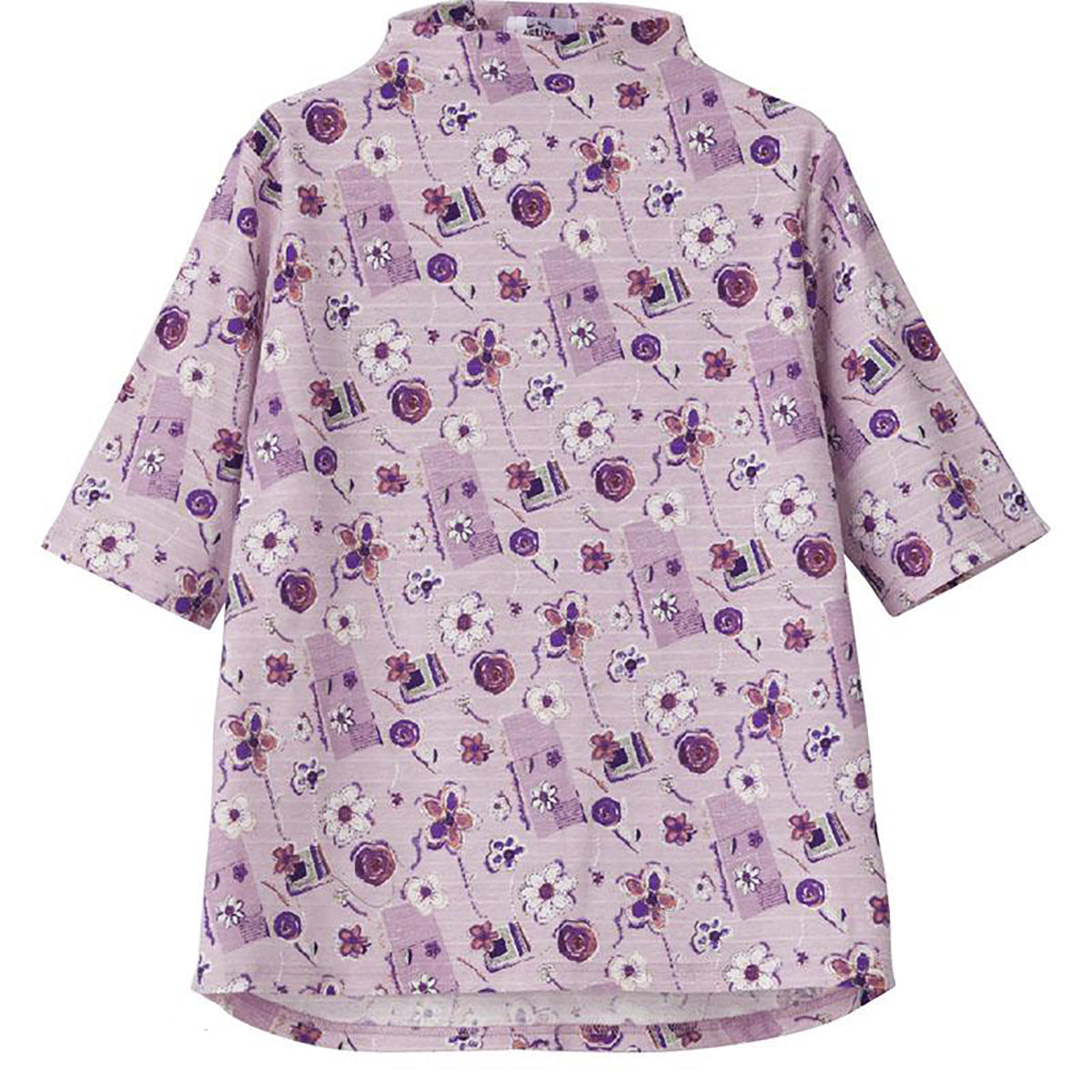 5分袖後ろ長めTシャツ パープル M~L/LL