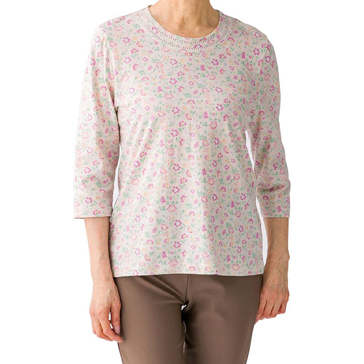7分袖背中ゆったり着心地Tシャツ ピンク M/L |