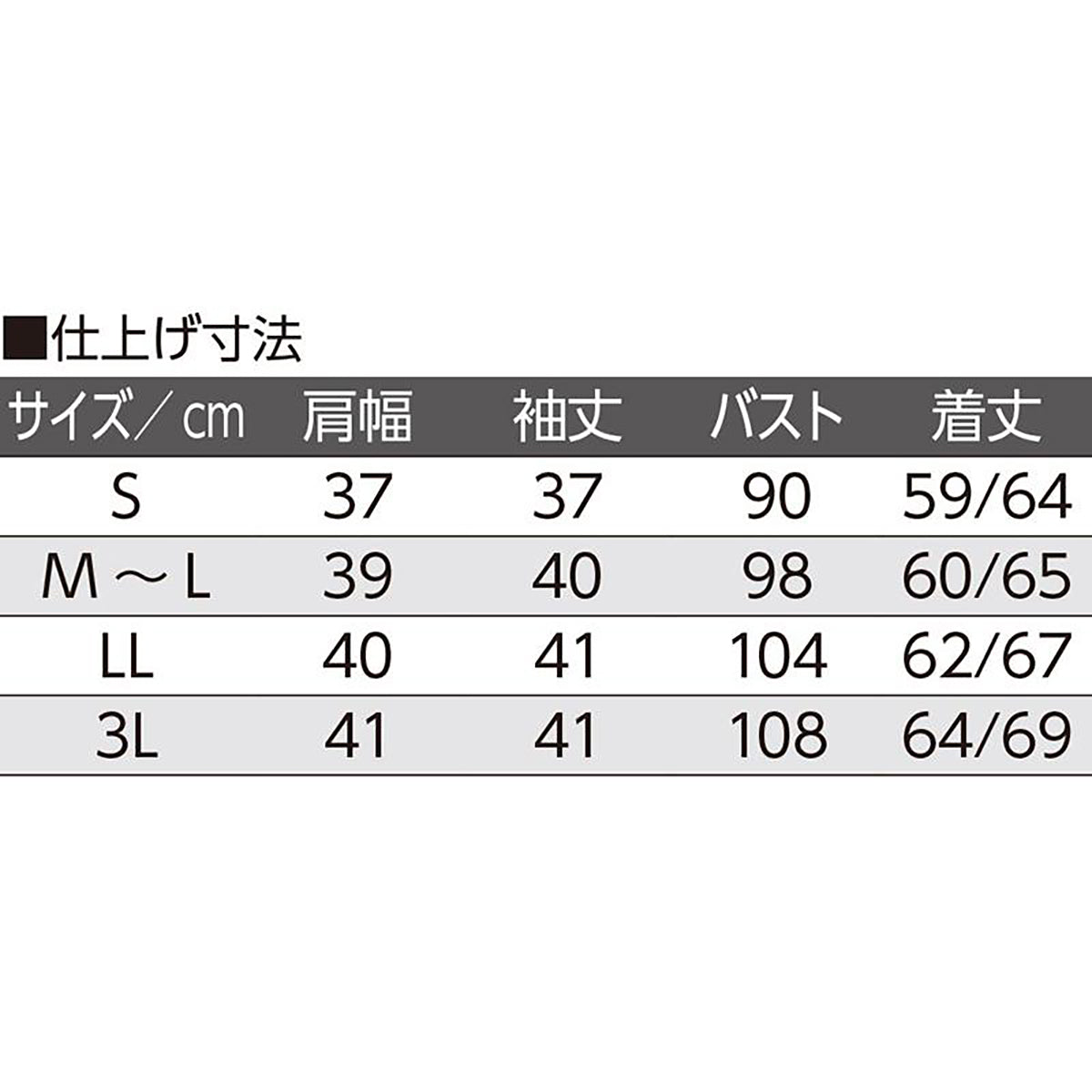 | S/M~L/LL/3L |