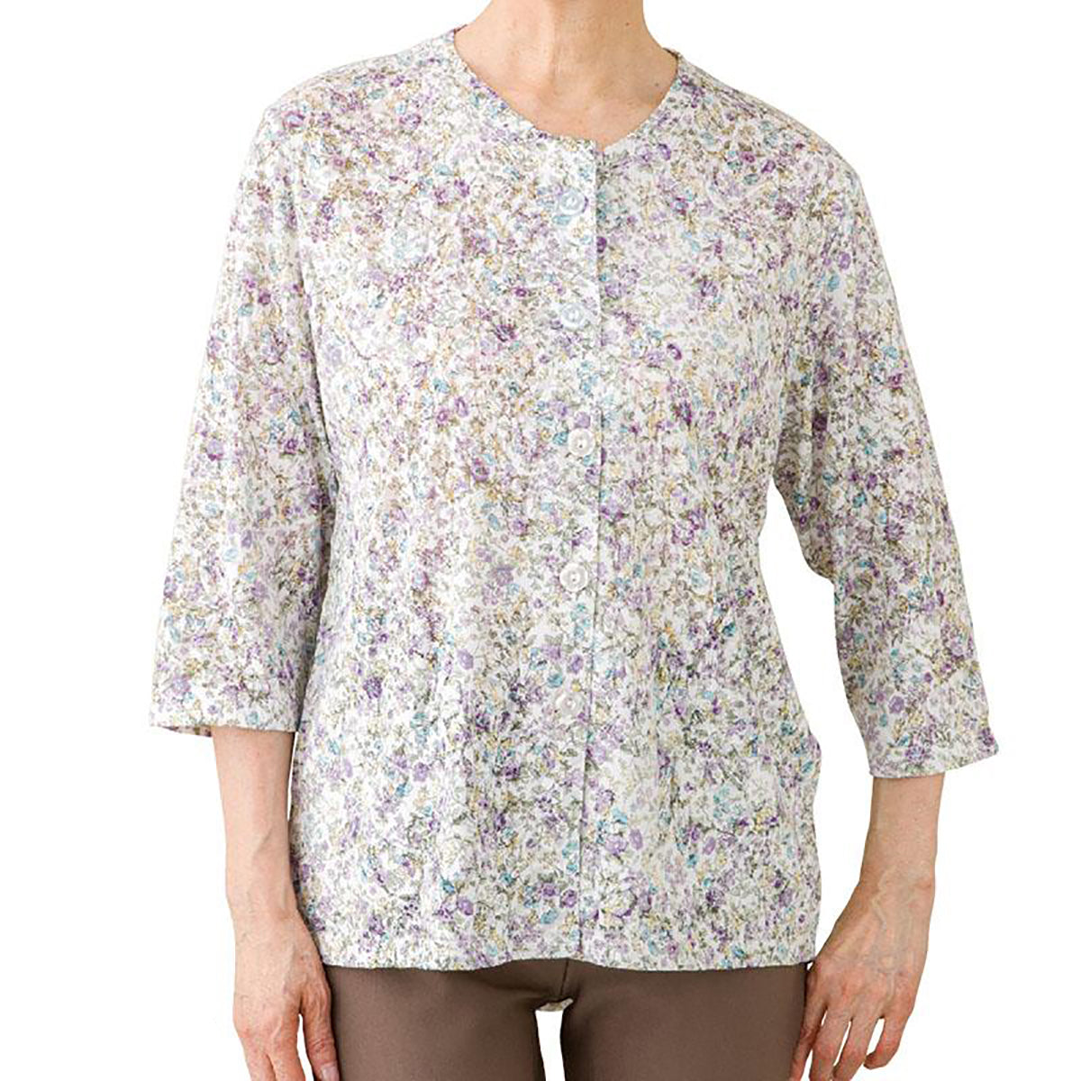 カット7分袖マグネット釦カーディガン(指先ストレッチ) ローズ M~L |