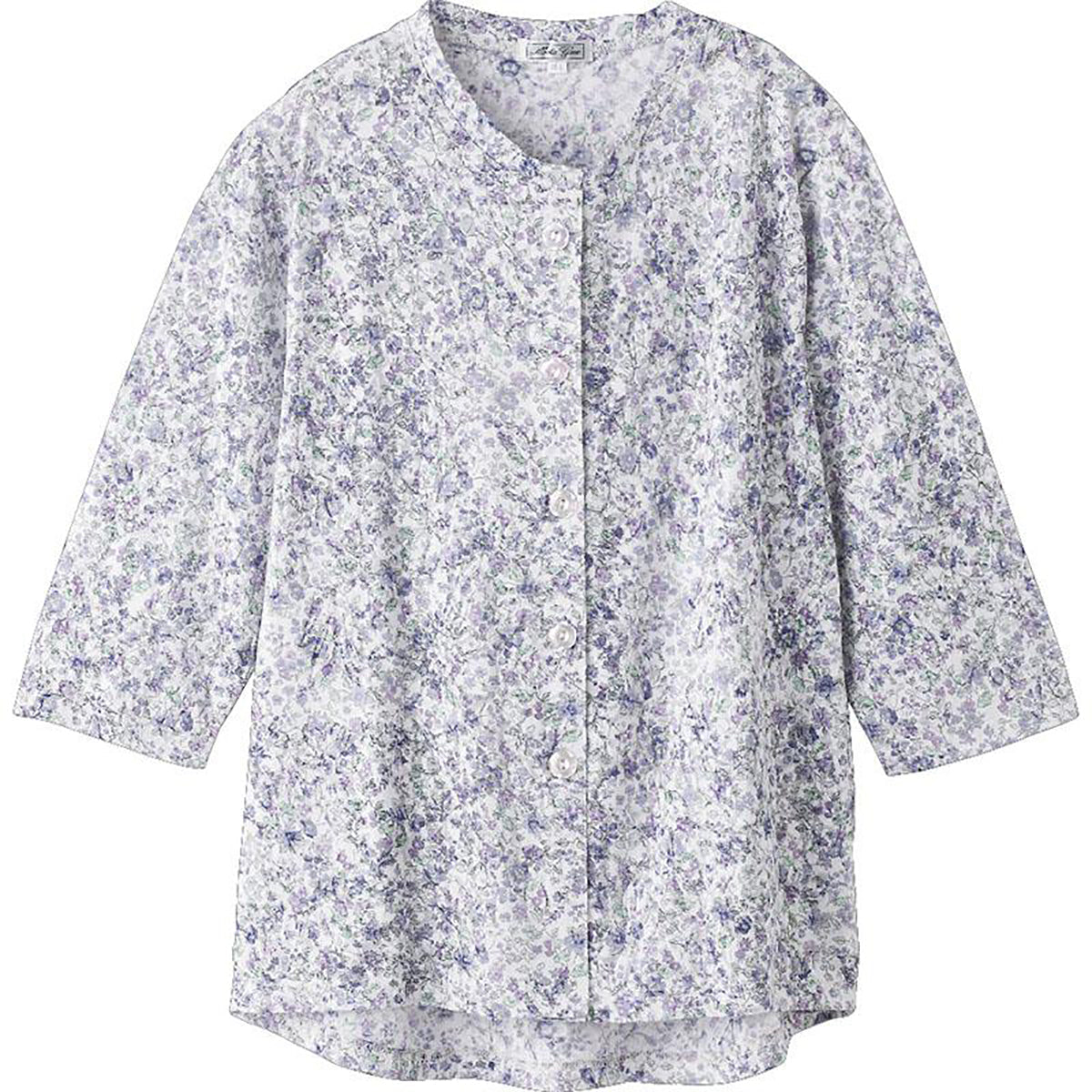 カット7分袖マグネット釦カーディガン(指先ストレッチ) ブルー M~L