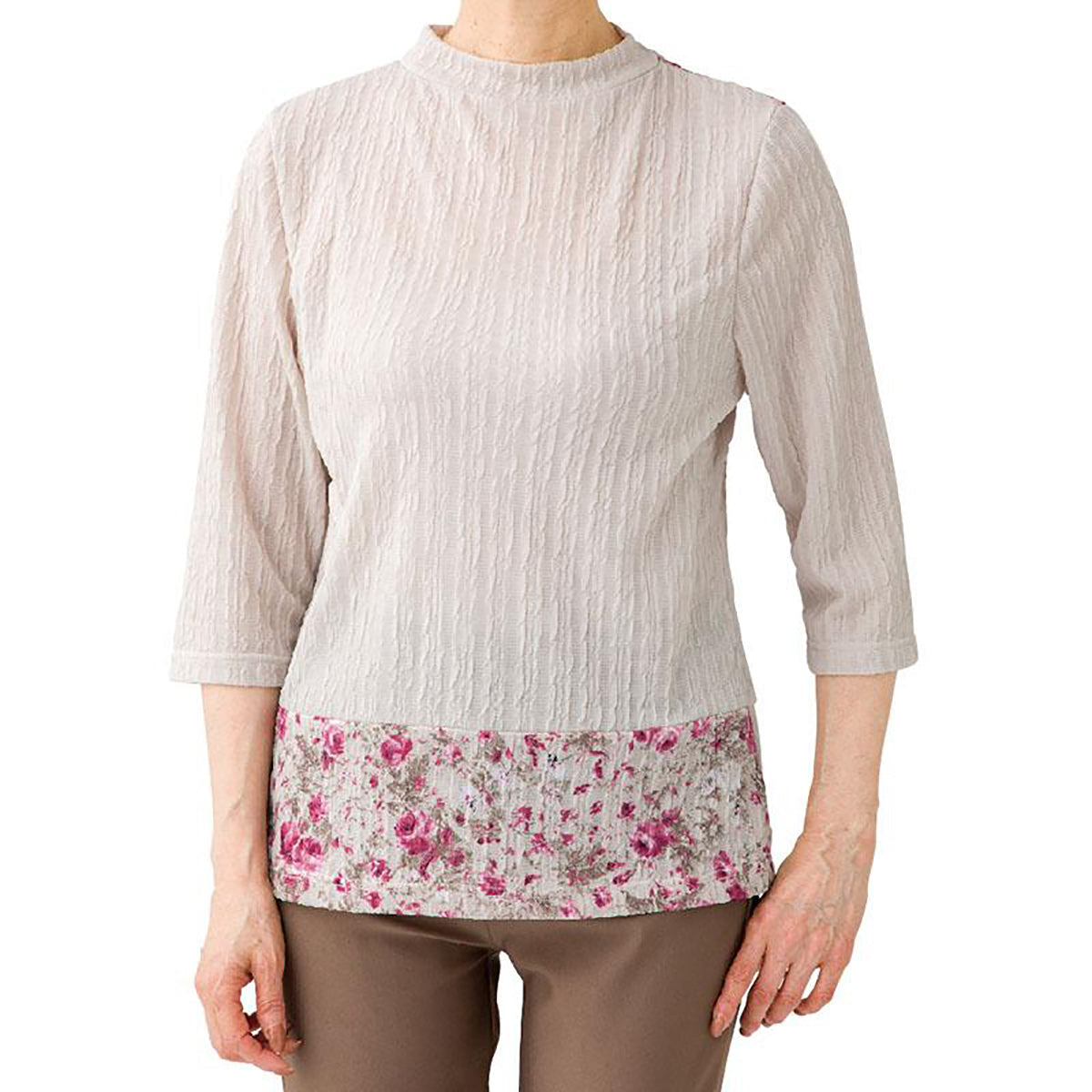 前・後ろ着られる7分袖Tシャツ ローズ M/L |