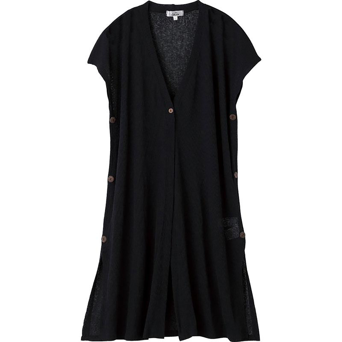 斜め釦ホール1釦ロングベスト ブラック M~L