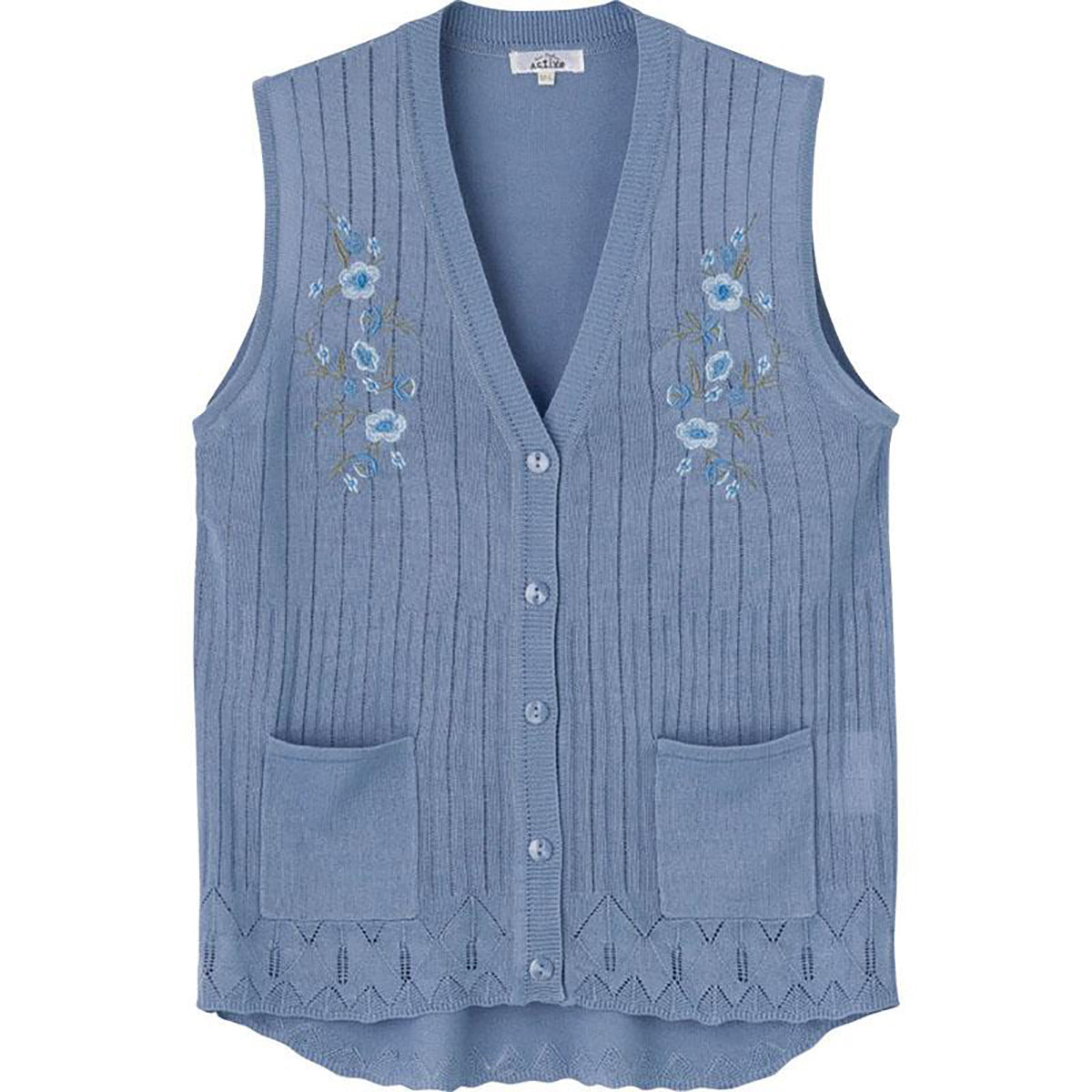 ニットワンタッチテープV首ベスト ブルー S/M~L/LL