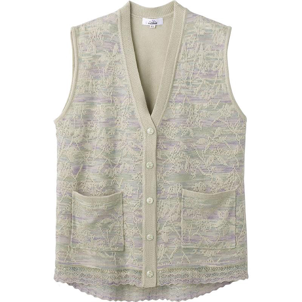 ニット斜め釦ホールV首ベスト グリーン M~L/LL/3L |