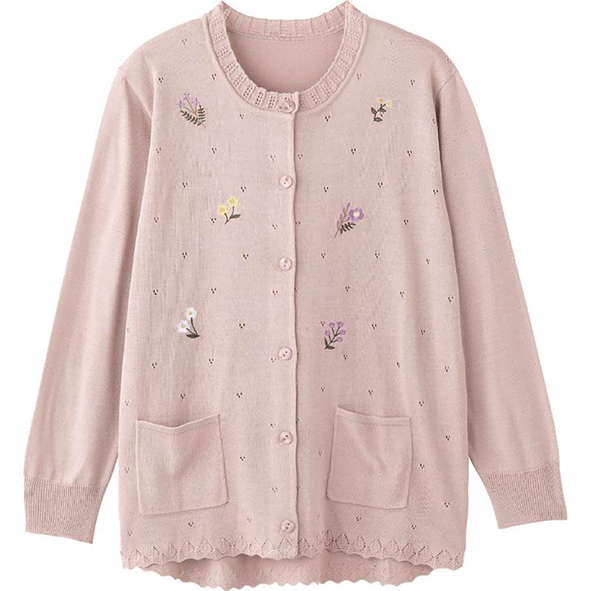 ニット斜め釦ホール丸首カーディ ローズ S/LL |