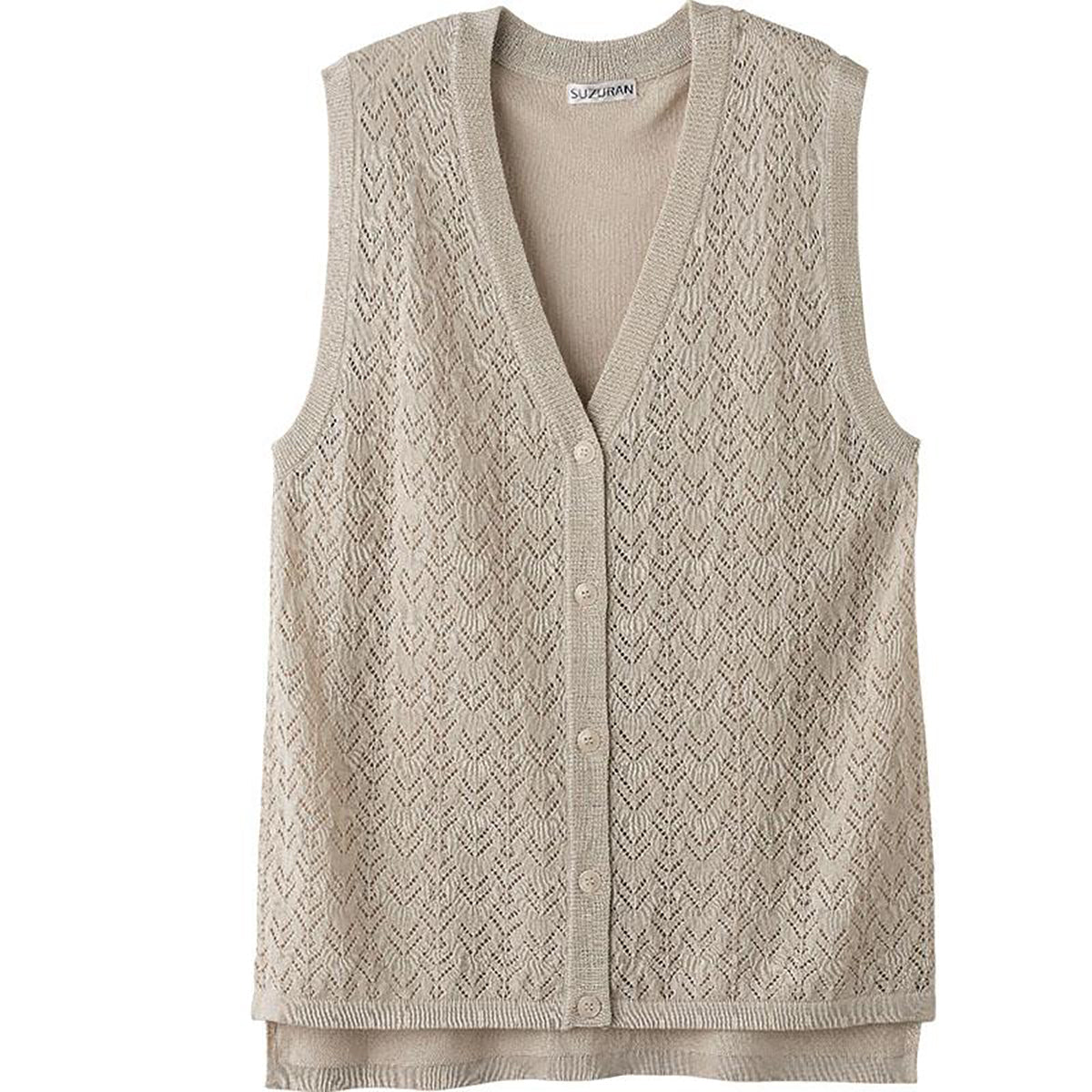 ニット後ろ長めV首ベスト ベージュ M~L