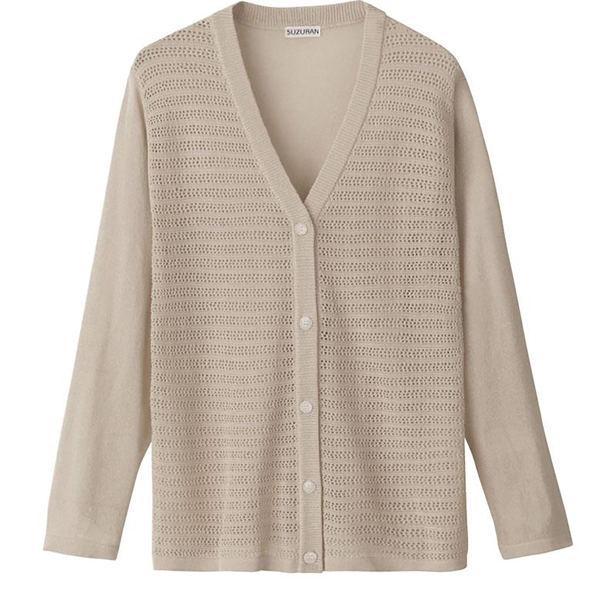ニットワンタッチV首カーディ ベージュ M~L |
