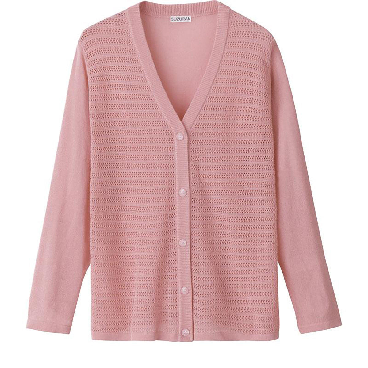 ニットワンタッチV首カーディ ローズ M~L