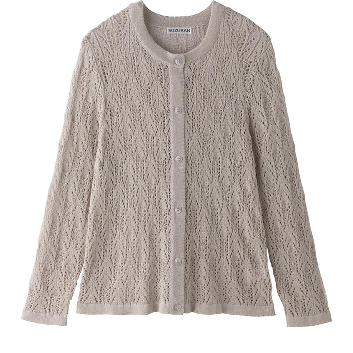 透かし柄丸首カーディガン ベージュ M~L/LL |