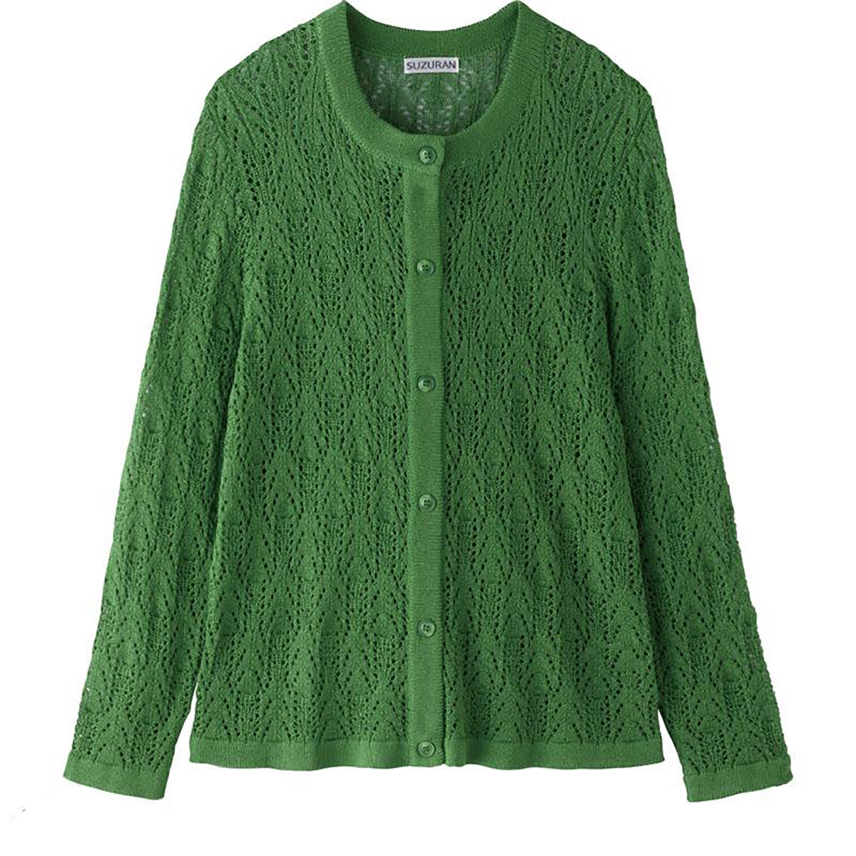 透かし柄丸首カーディガン グリーン M~L/LL |