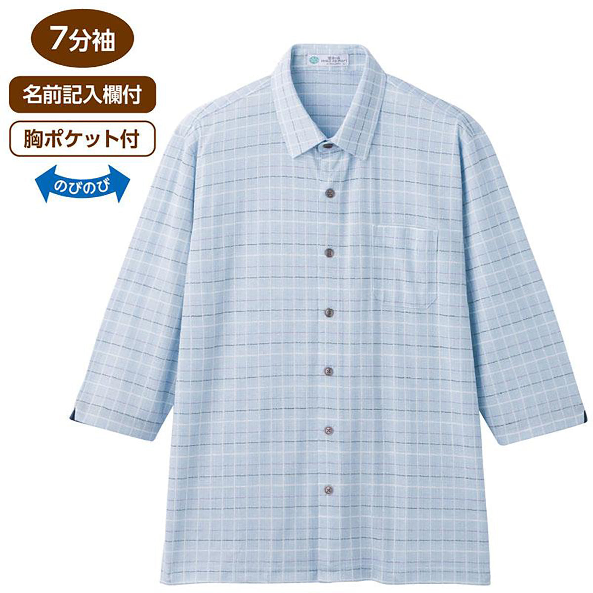斜めに開いたボタンホールにより、片手でもボタンの留め外しが負担なくできます。胸ポケットにはメガネやハンカチを収納できます。のびのび生地で動きやすいです。